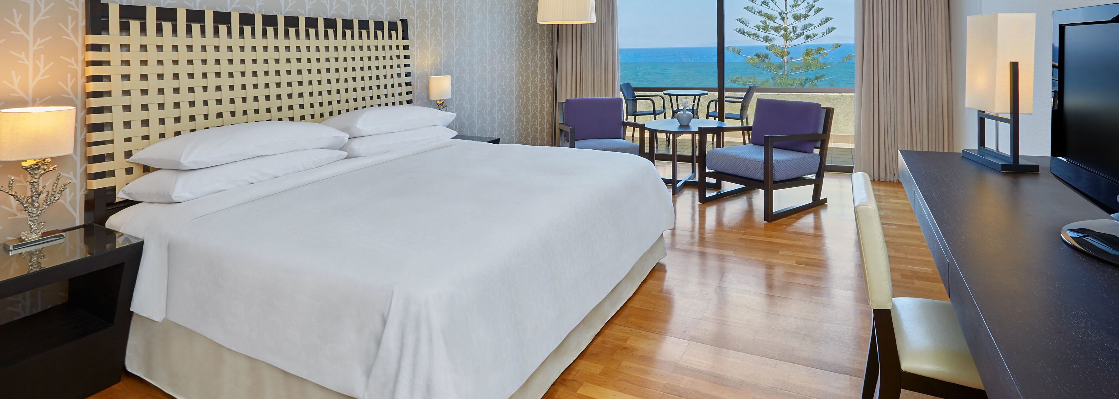 Pour abriter vos nuits à Rhodes, le Sheraton vous propose ses 369 chambres et 32 suites dotées de la literie exclusive AAA Five Diamond Award®. Prévus pour deux ou trois voyageurs, ces logements luxueux bénéficient tous d'un balcon ou d'une terrasse surplombant la mer Égée ou les jardins fleuris.