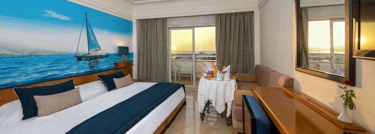 Pour offrir à vos vacances tunisiennes tout le confort qu'elles méritent, l'hôtel Blue Marine Hammamet vous propose ses chambres romantiques et reposantes. Prévus pour deux, trois ou quatre voyageurs, ces logements au décor marin bénéficient tous d'un balcon ou d'une terrasse meublée donnant sur le jardin de l'hôtel ou sur la mer.