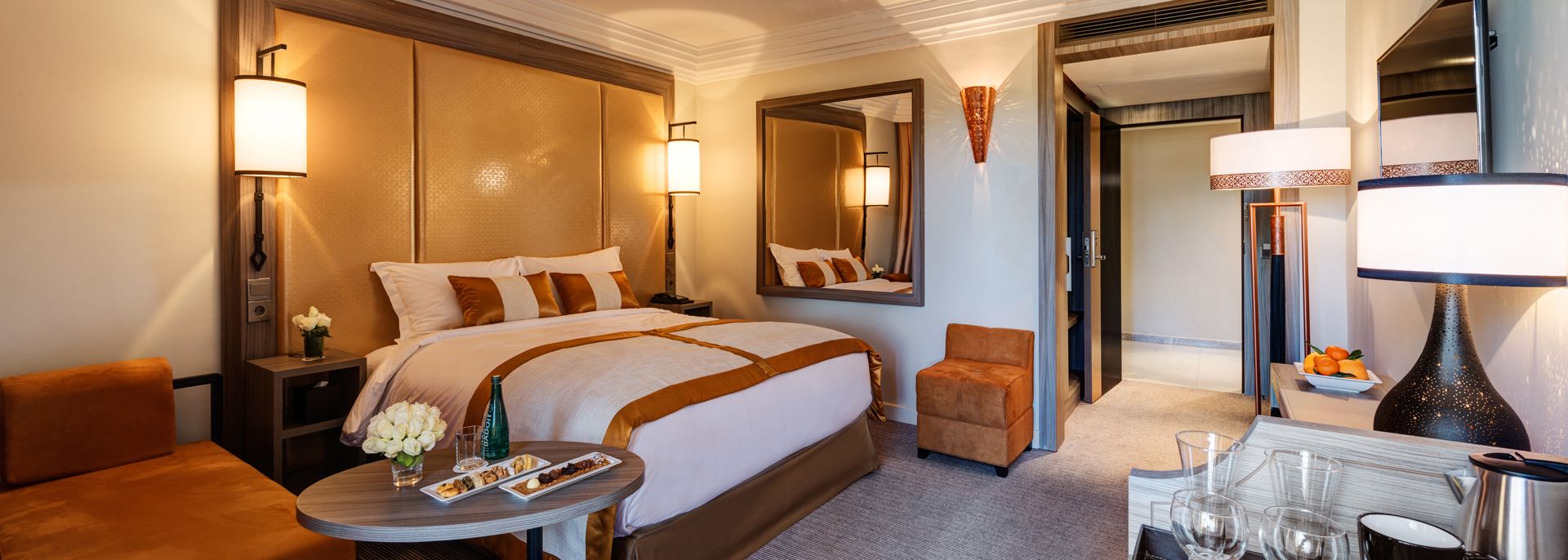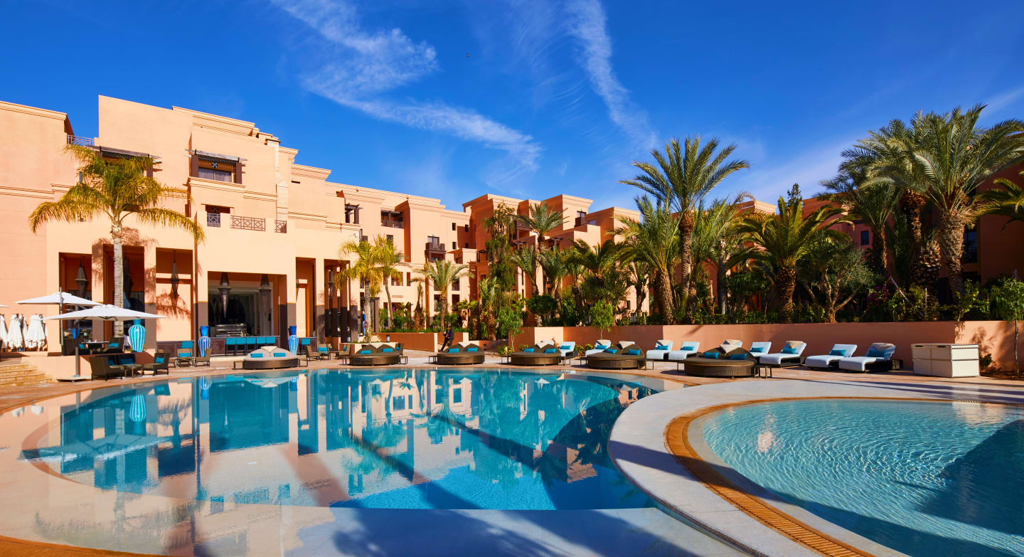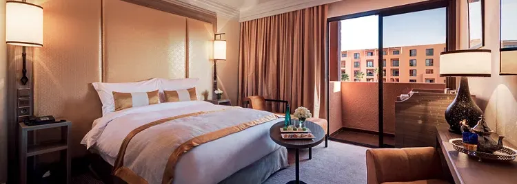 Au XVIIe siècle, Marrakech connait une révolution artistique et culturelle sous l’impulsion du sultan Ahmed al-Mansour. Le Mövenpick Mansour Eddahbi Marrakech 5* s’inspire de ce grand amoureux des arts et des belles choses. Niché dans le quartier moderne et animé de l’Hivernage, il apparaît tel un palais de pierre rose au milieu d’une oasis de palmiers. Sophistiqué et contemporain avec ses salons de velours aux couleurs chatoyantes et agréables, il intègre toute la délicatesse des motifs marocains dans sa décoration. Votre hôtel vous invite à la relaxation avec ses piscines et son espace bien-être et saura vous offrir un refuge ressourçant tout au long de votre séjour.