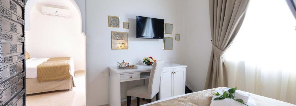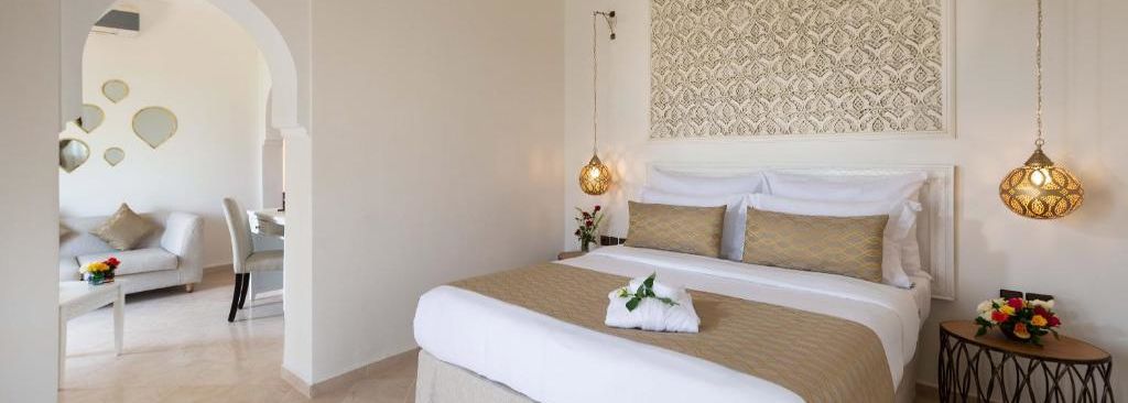 Aménagées dans un style marocain actuel avec luminaires ajourés, arches et couleurs sobres, les chambres de l'hôtel accueillent les couples et les familles. Elles possèdent un balcon ou une terrasse, la climatisation, une connexion Wi-Fi et de multiples autres équipements. Des peignoirs sont à votre disposition.