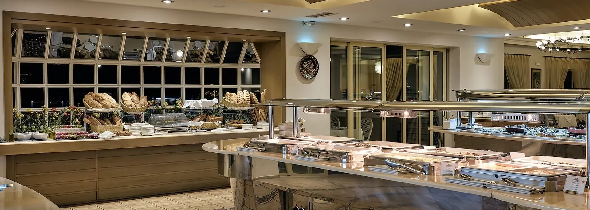 - La formule tout inclus comprend : les petits-déjeuners aux restaurants Kronos, Ariadni ou Gialos, les déjeuners au restaurant Ariadni et les dîners aux restaurants Kronos ou Ariadni. Sur réservation, possibilité de dîner aux restaurants Almyra (menu, 1 fois/semaine) ou Gialos (buffet, 5 fois/semaine). Inclus les boissons locales aux repas (eau, vins, bières pression, boissons sans alcool, café-filtre, thé), une sélection de boissons locales alcoolisées ou non de 10h à minuit. Des snacks froids, fruits, glaces sont proposés de 11h à 17h. Les boissons sont servies au verre (alcools de marque ou importés avec supplément). Boissons payantes après minuit.