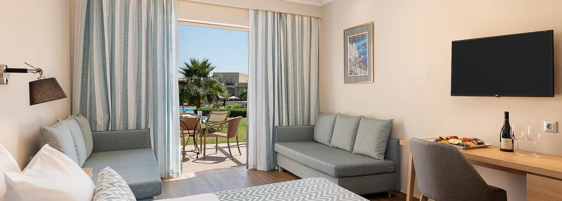 Niché entre la mer et les montagnes dans la charmante baie de l'Almiros, au nord-ouest de la Crète, le Pilot Beach Resort 5* associe une architecture soignée et des équipements complets. Les chambres spacieuses et modernes sont installées dans des pavillons à deux étages, répartis autour de la piscine et sur le front de mer. Vous accédez facilement aux quatre piscines extérieures, à la plage privée et à l'immense spa à pied ou en utilisant le petit train. Tennis, massages, aquagym, yoga, tir à l'arc : les activités sont variées. La cuisine des quatre restaurants est raffinée, comme le cadre naturel.