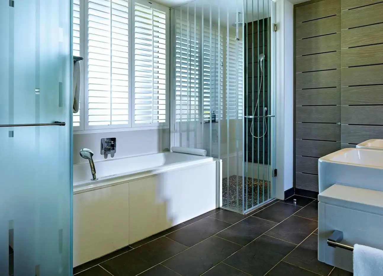 - Salle de bains avec baignoire et douche à l’italienne séparées
