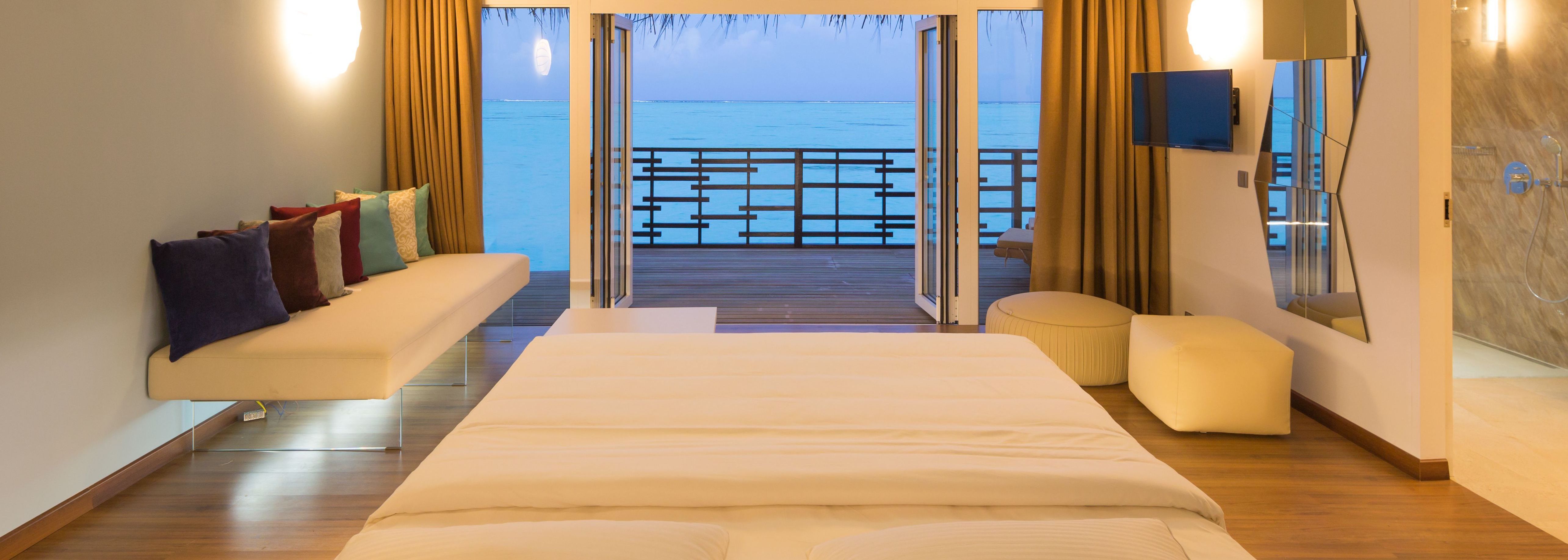 Le Cocoon Maldives 5* possède 150 villas aux intérieurs confortables et spacieux, prévues pour abriter les nuits des couples et des familles. Celles-ci sont directement installées sur le lagon ou sur le sable de la plage, selon les catégories d'hébergement.