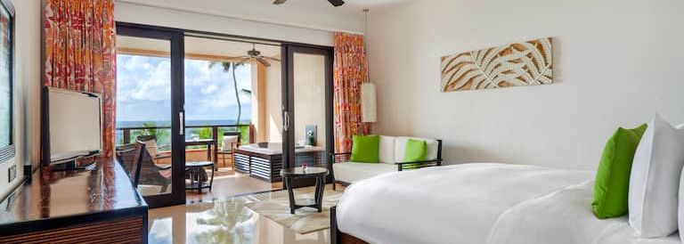 Pour bercer vos nuits sur l'île de Mahé, le DoubleTree by Hilton Seychelles Allamanda Resort & Spa propose 30 chambres douillettes et modernes s'ouvrant sur l'océan indien. Idéales pour les escapades romantiques et les séjours en couple, ces vastes alcôves comprennent un lit King Size dans l'espace nuit et un confortable canapé dans le coin salon.