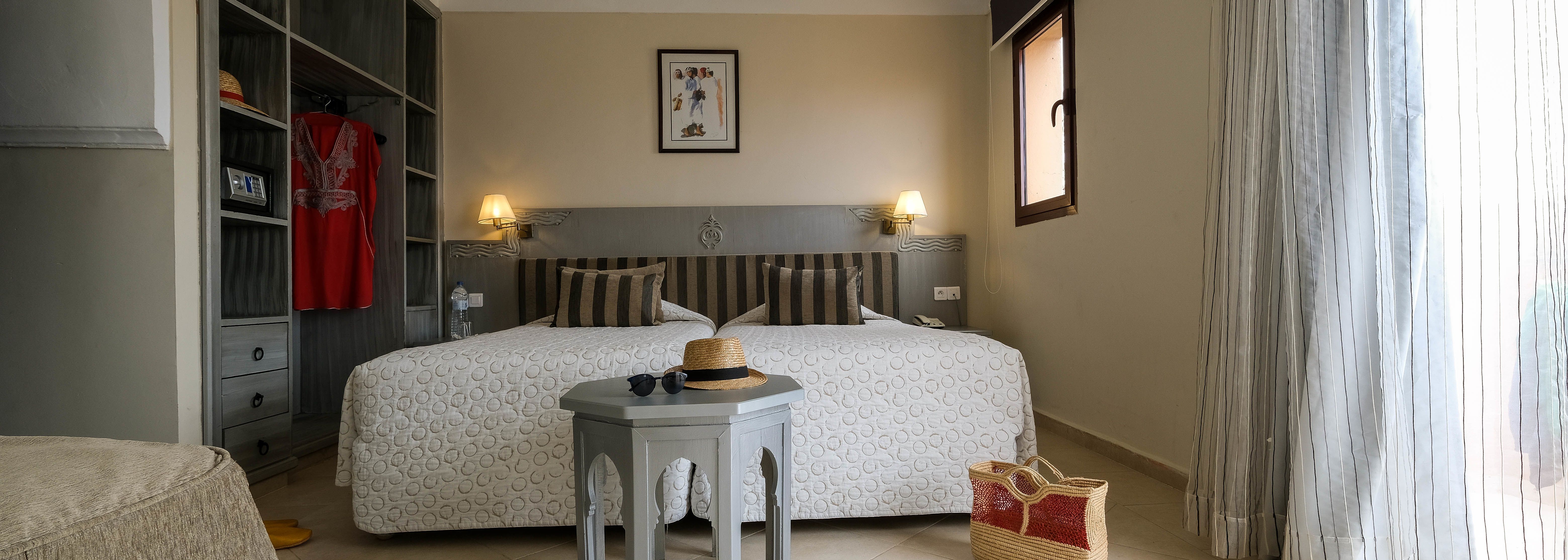 Les chambres du Valeria Madina Club sont spacieuses et confortables, réparties dans neuf bâtiments autour de jolis patios fleuris, comme dans un riad. Chaque chambre dispose d’un balcon ou d’une terrasse et d’un coin détente. Que vous soyez en couple ou en famille, vous passerez un séjour agréable.