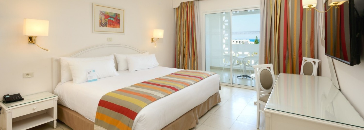 Pour faire de votre séjour tunisien un vrai moment de confort, l'Occidental Sousse Marhaba vous propose ses chambres et ses suites au décor élégant. Prévus pour deux, trois ou quatre voyageurs, ces logements luxueux bénéficient tous d'un balcon ou d'une terrasse donnant sur le jardin de l'hôtel ou sur le golfe d'Hammamet.