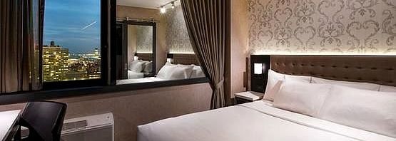 Idéalement situé dans Midtown Manhattan, à proximité de Broadway, du Rockefeller Center et de l’Empire State Building, l’Aliz Hotel Times Square **** vous plonge dans l’ambiance incomparable de New-York. Cet établissement vient juste d’ouvrir ses portes et abrite des chambres contemporaines et lumineuses, offrant des équipements modernes et une vue à couper le souffle sur la ville. Un restaurant et un bar lounge sont installés sur deux niveaux sur le toit panoramique, vous promettant des instants mémorables autour d’un verre ou d’un repas. L’hôtel dispose également d’un service de concierge et de voiturier et d’une salle de fitness.