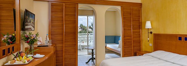 Pour abriter confortablement vos vacances à Hammamet, l'hôtel Méditerranée Thalasso Golf vous propose ses chambres douillettes et vastes. Prévus pour deux, trois ou quatre voyageurs, ces logements au décor marin bénéficient tous d'un balcon ou d'une terrasse meublée donnant sur le jardin ou sur la mer.