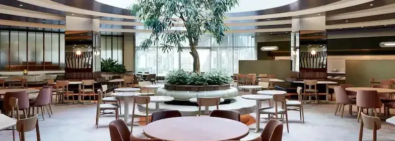 Dans une oasis inondée de lumière, vous pouvez opter pour un délicieux petit déjeuner au buffet du Hub. Dans la journée, retrouvez cette ambiance conviviale et ce décor apaisant pour prendre un verre et discuter avec vos proches.
