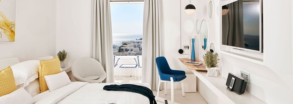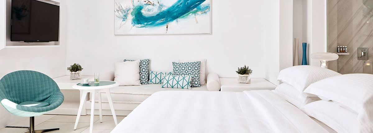 À deux ou à trois, les chambres et suites spacieuses et élégantes du Myconian Ambassador Relais et Châteaux vous accueillent dans le plus grand confort.