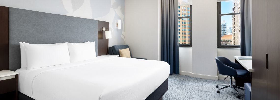Récemment rénové, le Residence Inn New York Downtown Manhattan/World Trade Center Area 4* est un hôtel moderne installé dans le quartier d'affaires de Manhattan, aux États-Unis. C'est l'adresse idéale pour explorer New York en couple, entre amis ou en famille et découvrir ses lieux les plus incontournables situés à quelques pas. Ce quatre-étoiles propose des suites et des studios tout confort dans lesquels vous sentir comme chez vous. Une salle de sport est présente dans l'établissement afin de faire de l'exercice à tout moment. Enfin, un copieux petit déjeuner est servi chaque matin pour bien commencer la journée.