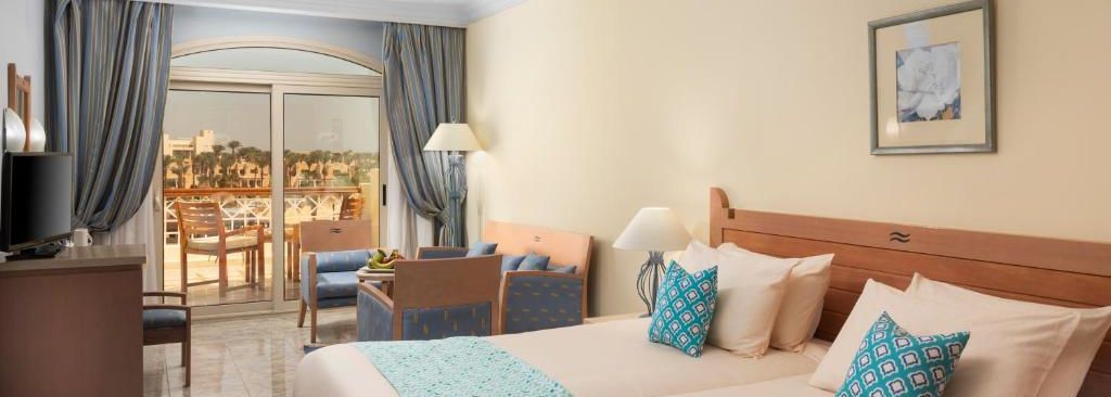 Le matin, profitez d'un bain de soleil au bord de l'une des quatre piscines du complexe. Flânez ensuite dans les jardins et appréciez le calme ambiant. Les enfants pourront s'amuser dans la piscine qui leur est dédiée où ils découvriront d'immenses toboggans aquatiques. Une fois détendu, une navette vous attendra pour vous conduire sur la plage privée située à quelques minutes de l'hôtel. Vous y admirerez les paysages uniques de la mer Rouge avant d'aller explorer la région d'Hurghada.