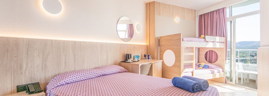 Les chambres bénéficient d'un balcon conçu pour profiter du soleil tout en surveillant la vaste piscine. Confortables et fonctionnels, ces espaces de vie sont parfaits pour les familles.