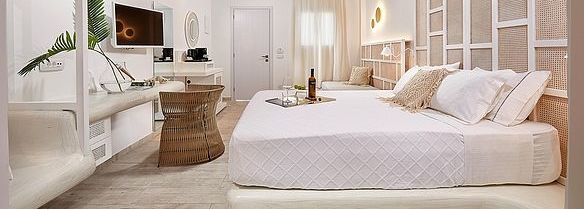 Installé sur la pointe sud de l'île, le Petri Suites Santorini ouvre ses portes à quelques pas de la célèbre plage de Perivolos. Accroché sur les hauteurs du village, ce resort à l'architecture typiquement cycladique met à votre disposition ses 30 suites et maisonnettes modernes et élégantes. Durant votre séjour à Santorin, vous ferez rimer vacances avec gourmandise et détente, en goûtant le petit déjeuner servi chaque matin sous forme de buffet au bord de la piscine dominant la mer Égée.
