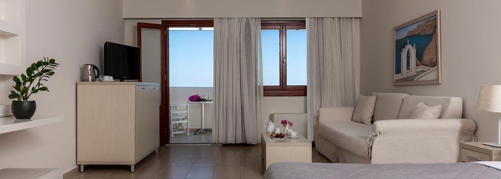 La piscine extérieure de l’établissement vous appelle à vous rafraîchir, tandis que le solarium attenant vous accueille pour un instant de farniente. Vous aurez également la possibilité de vous offrir un massage ou un soin au spa. Une fois ressourcé, vous vous lancerez dans une activité nautique ou culturelle. Vous pourrez aussi choisir d’aller visiter les localités de Fira et d’Oia, dont les constructions blanches et les coupoles bleues forment des paysages au charme incomparable.