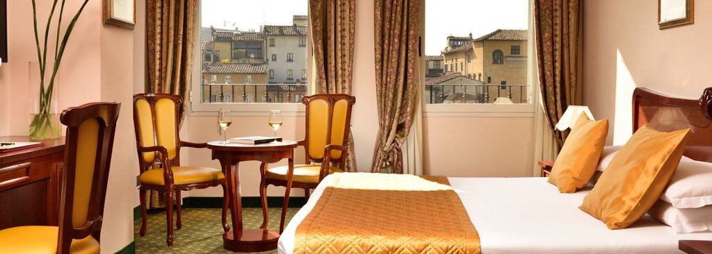 Derrière la façade d'une noble demeure bordant l'Arno, le Berchielli ouvre ses portes à quelques pas du Ponte Vecchio et de la Piazza della Signoria. Pour faire de votre séjour dans le centre historique de Florence un pur moment d'évasion, votre hôtel 4* met à votre disposition ses chambres élégantes, son service du petit déjeuner et son rooftop dominant les toits de la capitale toscane. D'ici, le Palazzo Vecchio et le musée des Offices sont accessibles en cinq minutes de marche.
