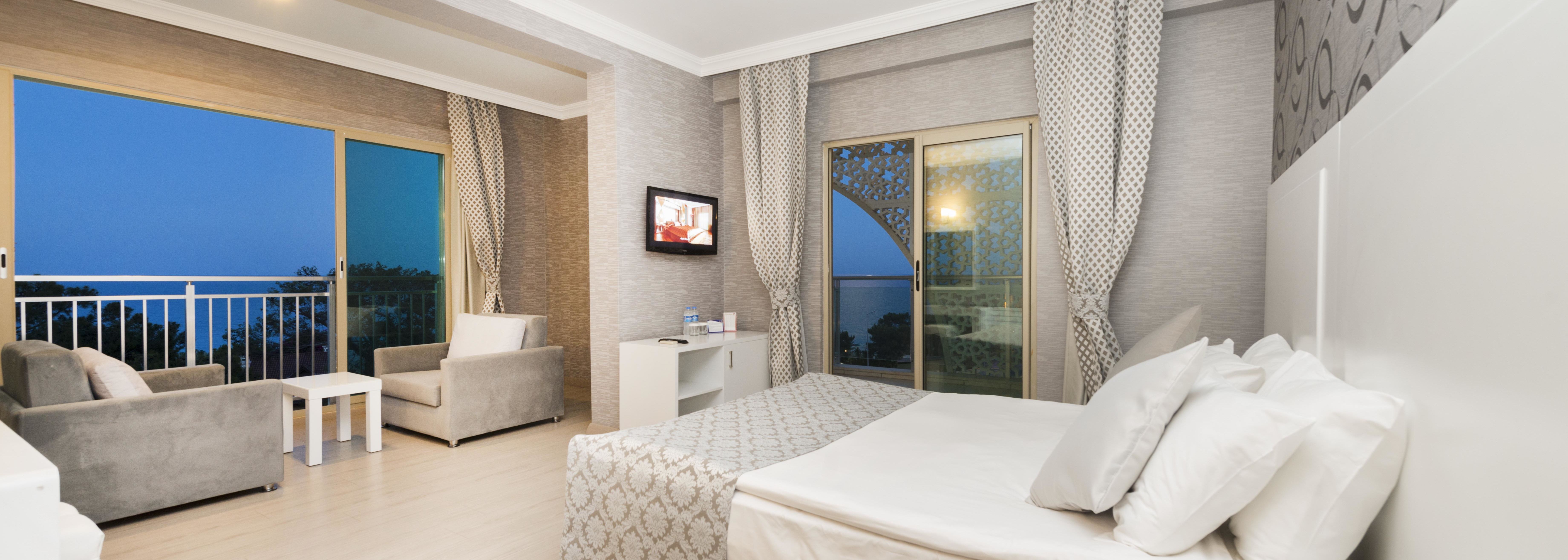 À une dizaine de kilomètres du centre de Kemer et de son animation, le Grand Ring Hotel se niche au cœur d'un domaine de 20 000 m². La propriété avec plage privée s'étire au bord du bleu de la Méditerranée. Ses 326 chambres sont des havres relaxants et lumineux. Elles disposent toutes d'un balcon. Les deux restaurants de l'hôtel invitent à se délecter d'une cuisine internationale de qualité. Avec ses trois piscines, des toboggans aquatiques et son spa, l'établissement contemporain et élégant est parfait pour prendre du temps pour soi. Une atmosphère familiale enveloppe cet hôtel animé pour grands et petits.