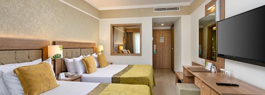 Cap sur la région d'Antalya, le long d'une côte aux plages de sable ocre. Adossé à la ville et à un paysage de montagnes, l'Innvista Hotel Belek vous ouvre ses portes. Ce grand resort contemporain proche de la mer séduit les amateurs de baignades et farniente avec pas moins de cinq piscines et un spa. Ses 315 vastes chambres sont pensées pour votre repos et ses restaurants proposent de nombreux types de cuisines différentes. Animé en journée comme en soirée, cet établissement familial dispose d'un parc aquatique pour les enfants et d'une plage privée facilement accessible.