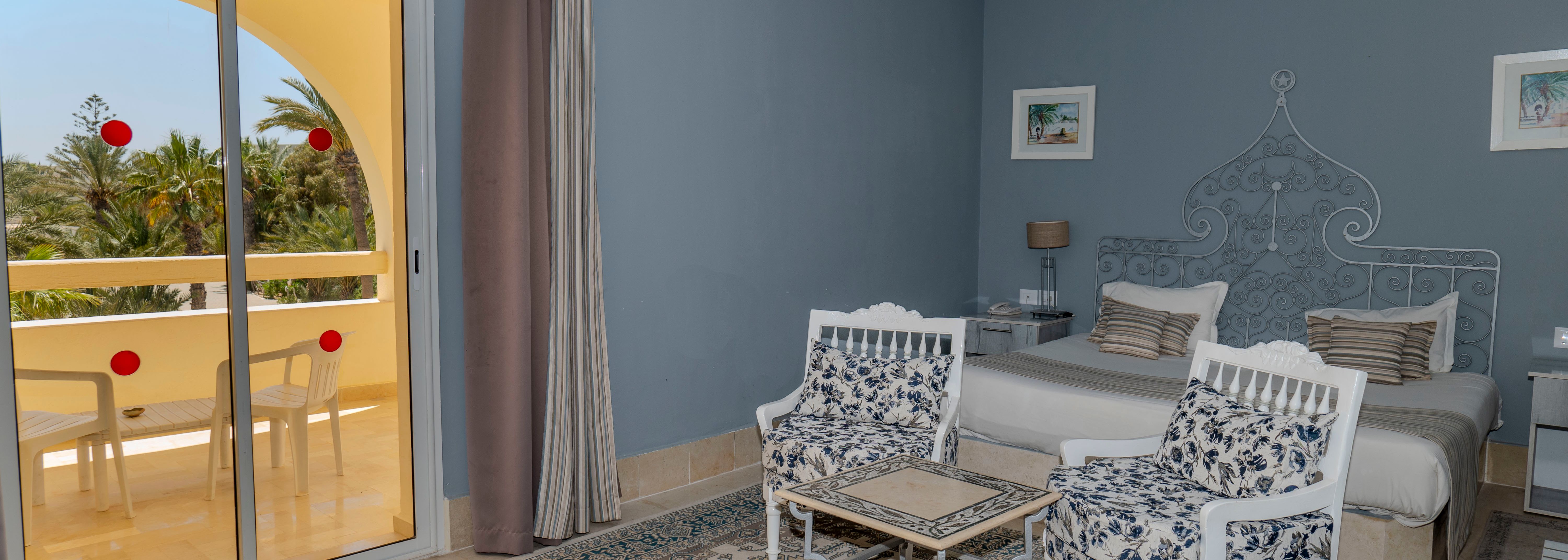 En amoureux, entre amis ou en famille, optez pour la chambre supérieure. Vous avez la possibilité de vous retrouver à 4 dans le duplex du Djerba Aqua Resort ****