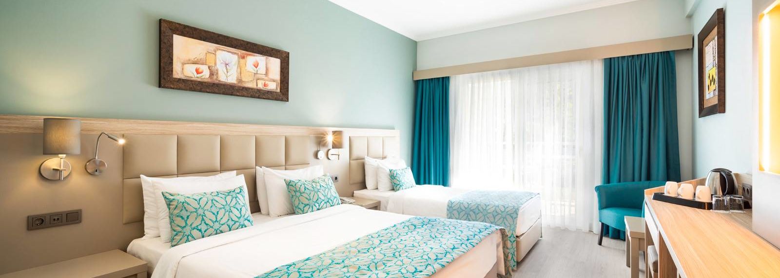 Pour abriter confortablement votre séjour sur le front de mer de Kusadasi, l'Aqua Fantasy Aquapark Hotel & Spa vous propose ses chambres au décor élégant. Conçus pour trois ou quatre voyageurs, ces cocons délicats disposent des meilleurs équipements. Tous bénéficient d'un balcon donnant sur la mer ou sur le jardin.