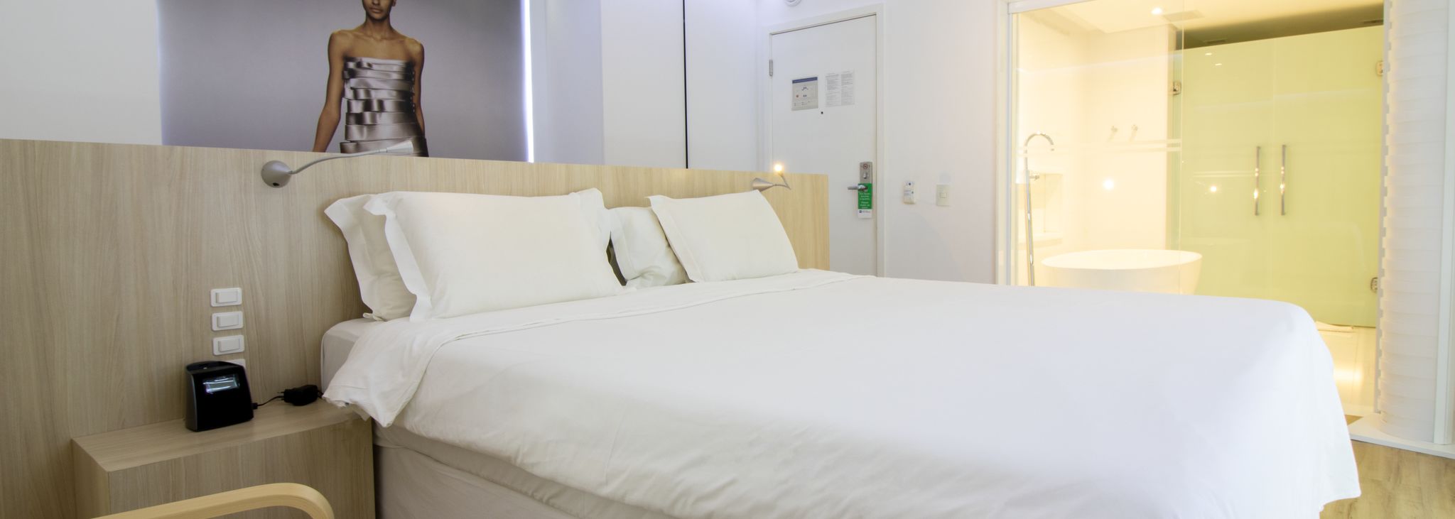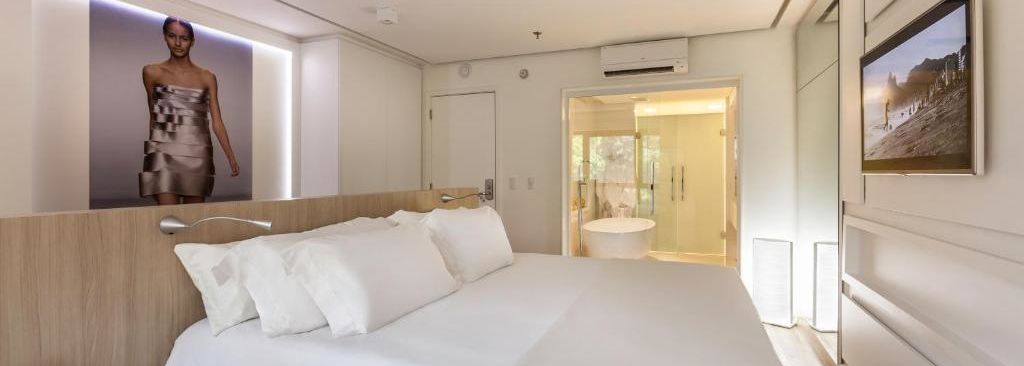 Tous comme les espaces communs, les hébergements de l’hôtel Bossa-Nova Ipanema se distinguent par leur design contemporain et leur ton immaculé. Les lampes mettent en valeur ce style particulièrement lumineux et créent un cadre cosy pour votre séjour en couple.