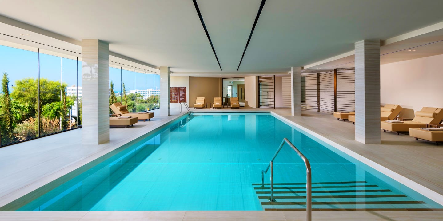 Sur le toit de l'hôtel se trouve une grande piscine à débordement avec vue sur la Méditerranée et entourée de transats. Au spa, vous pouvez vous détendre dans le sauna ou profiter d'un massage ou d'une pédicure. Un programme d'activités comme le yoga et le Pilates vous est aussi proposé. Autour de l'hôtel, paysages et animations s'offrent à vous. La plage est proche, tout comme les falaises du cap Greco et le centre-ville d'Ayia Napa.