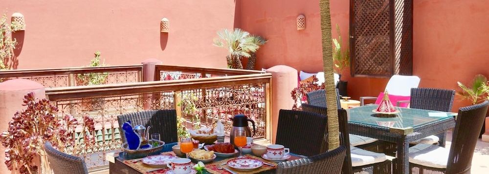 Bien qu'à moins de dix minutes de marche de la place Jemaa-el-Fnaa et du souk Semmarine, le riad vous plonge dans une atmosphère paisible. De plus, vous pourrez compter sur l'espace bien-être où vous trouverez un hammam et une cabine de massage. La terrasse située sur le toit dispose également de plusieurs aménagements qui vous invitent à la détente absolue.