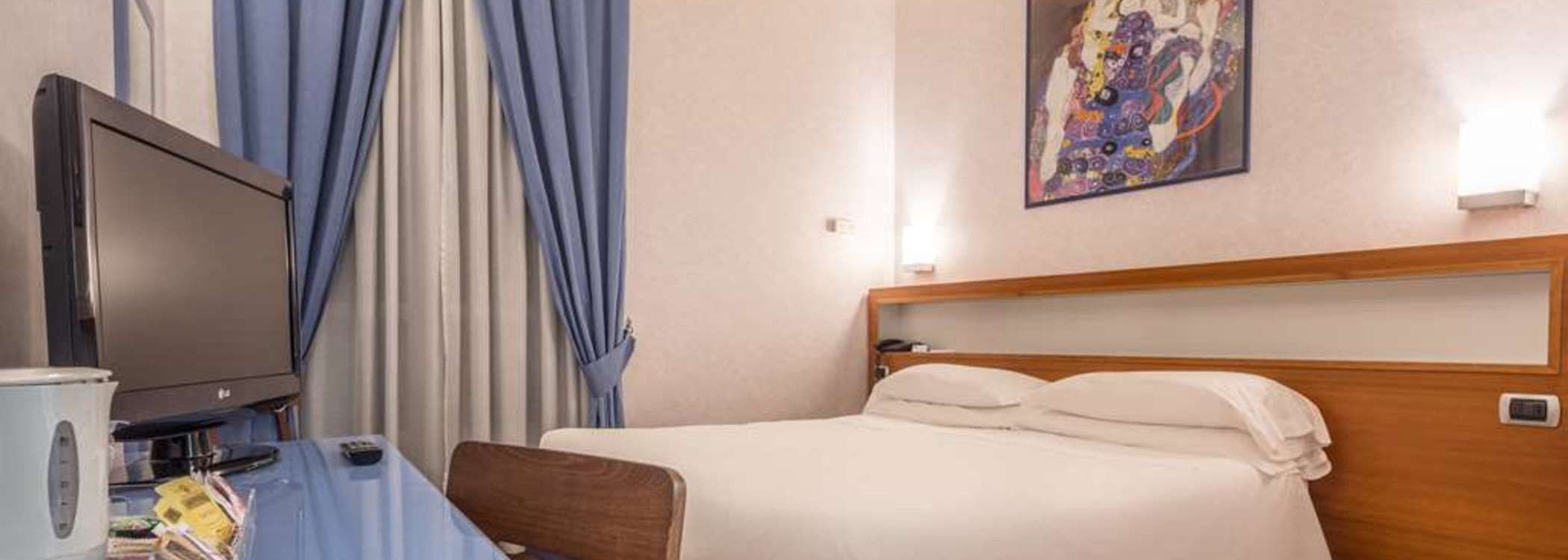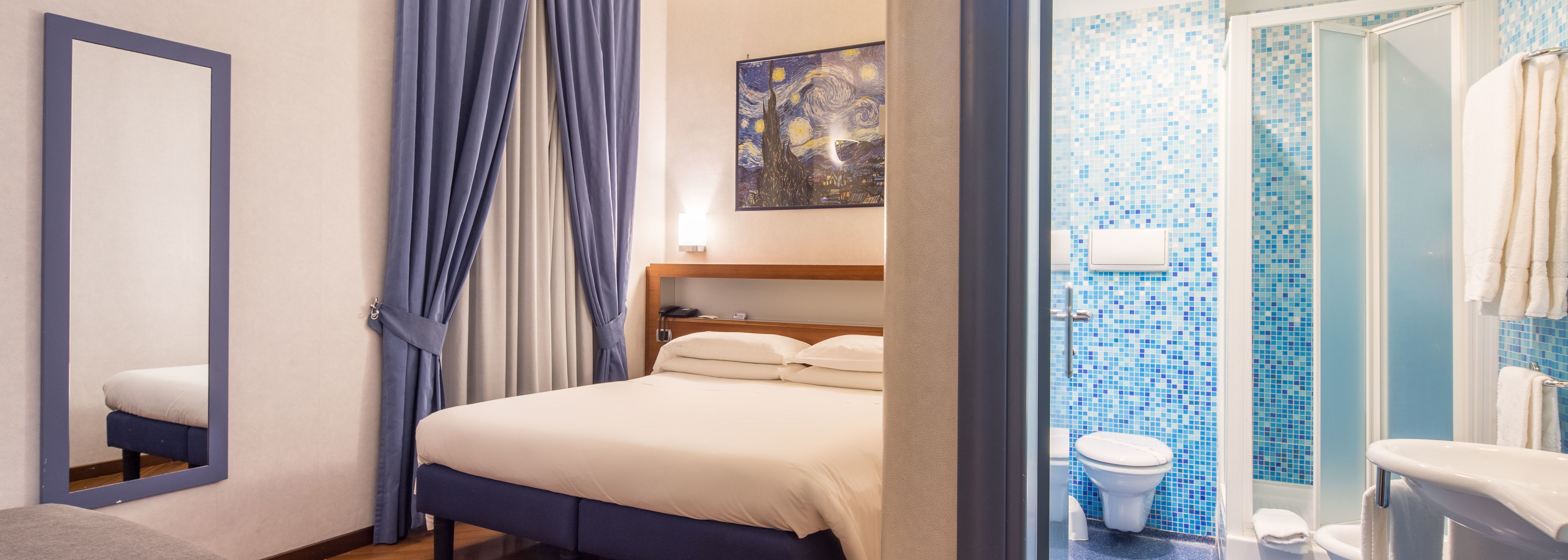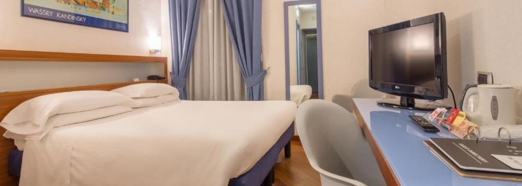 Vous prenez le petit-déjeuner inclus sur la terrasse de l'hôtel, située au 5e étage. La vue panoramique accompagne parfaitement le buffet varié et copieux : charcuterie, fromage, crudités, viennoiseries, pâtisseries, pains variés, œufs, céréales... Vous séjournez dans un quartier où se trouvent de nombreux restaurants typiquement italiens.