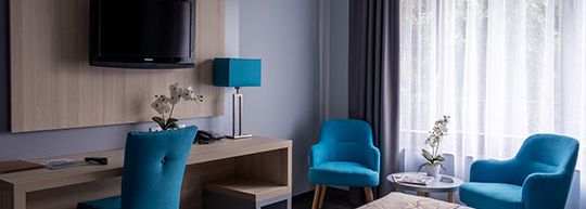 Pour cette escapade à deux à Budapest, vous séjournerez dans une chambre Supérieure. Moderne et confortable à souhait, elle sera votre cocon le temps de vos vacances dans la capitale hongroise. Pour des séjours en famille, la chambre Family et la Suite seront des hébergements adaptés.