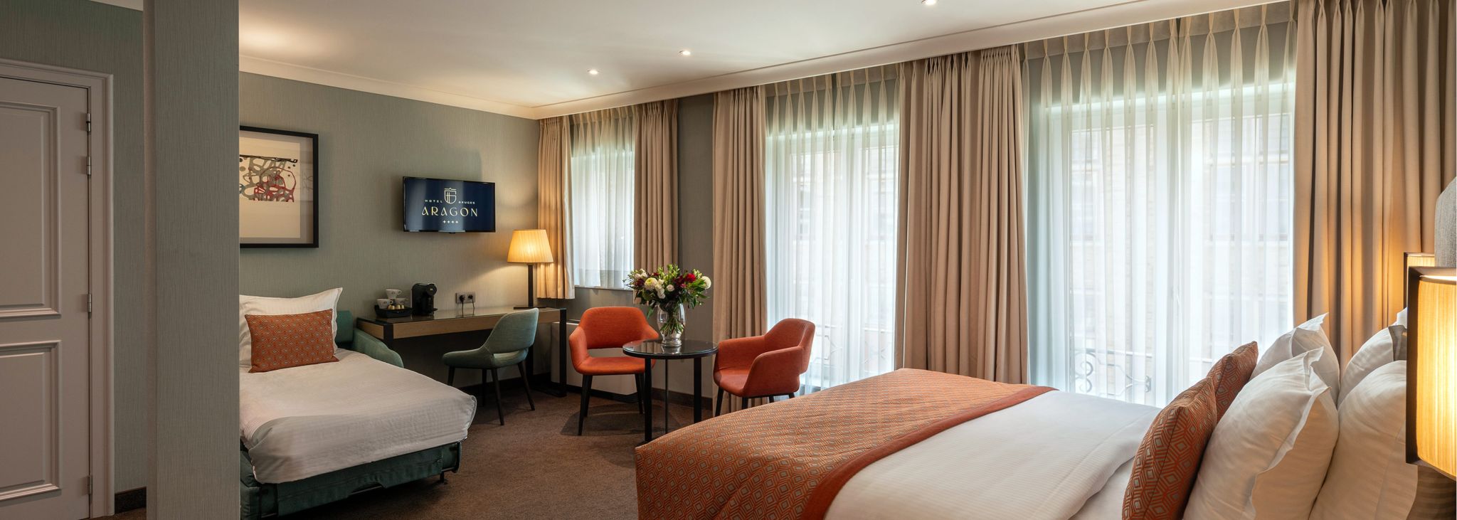Pour abriter confortablement votre séjour dans la vieille-ville de Bruges, l'hôtel Aragon vous propose ses chambres au décor soigné. Conçus pour deux, trois ou quatre voyageurs, ces nids délicats récemment rénovés disposent d'équipements de pointe. Certains bénéficient d'une agréable vue sur la ville.