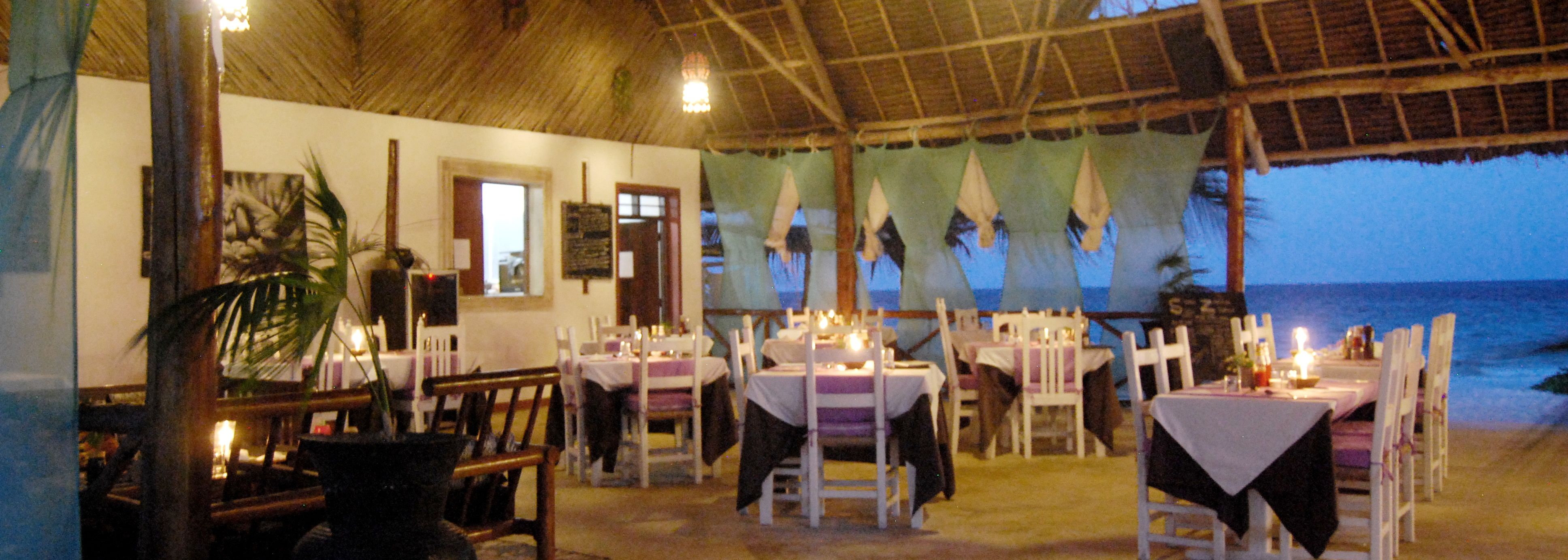 Le restaurant et bar de l'hôtel est un endroit incontournable durant votre séjour. Accessible tout au long de la journée, il ouvre largement sur la plage. À sa carte, vous aurez le choix parmi les plats typiquement swahilis ainsi que des spécialités japonaises et européennes. Vous pourrez également vous délecter d'une bonne pizza cuite au feu de bois.