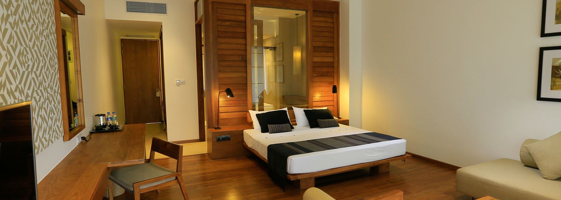 Pour abriter vos vacances sur la plage d'Induruwa, le Pandanus Beach Resort & Spa vous propose ses chambres au décor chaleureux. Vastes et lumineux, ces nids douillets disposent d'équipements à la pointe de la modernité et d'un balcon privé donnant sur la mer.