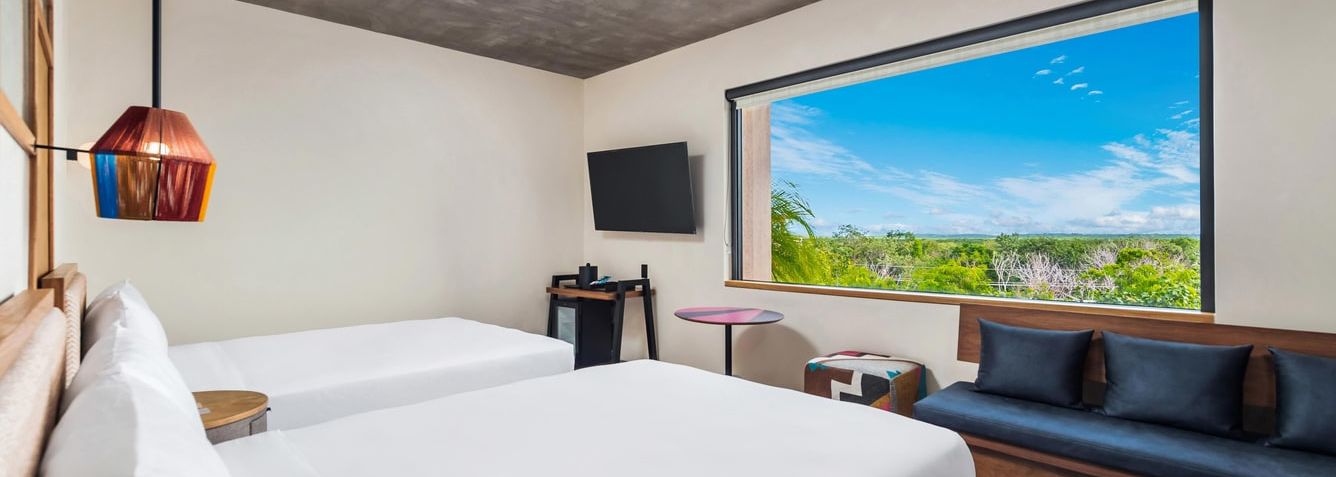 Pour abriter confortablement votre séjour sur les côtes mexicaines, l’Aloft Tulum 4* vous propose ses chambres au design contemporain. Prévus pour deux, trois ou quatre voyageurs, ces cocons douillets avec vue sur la ville se dotent d’équipements à la pointe de la modernité.