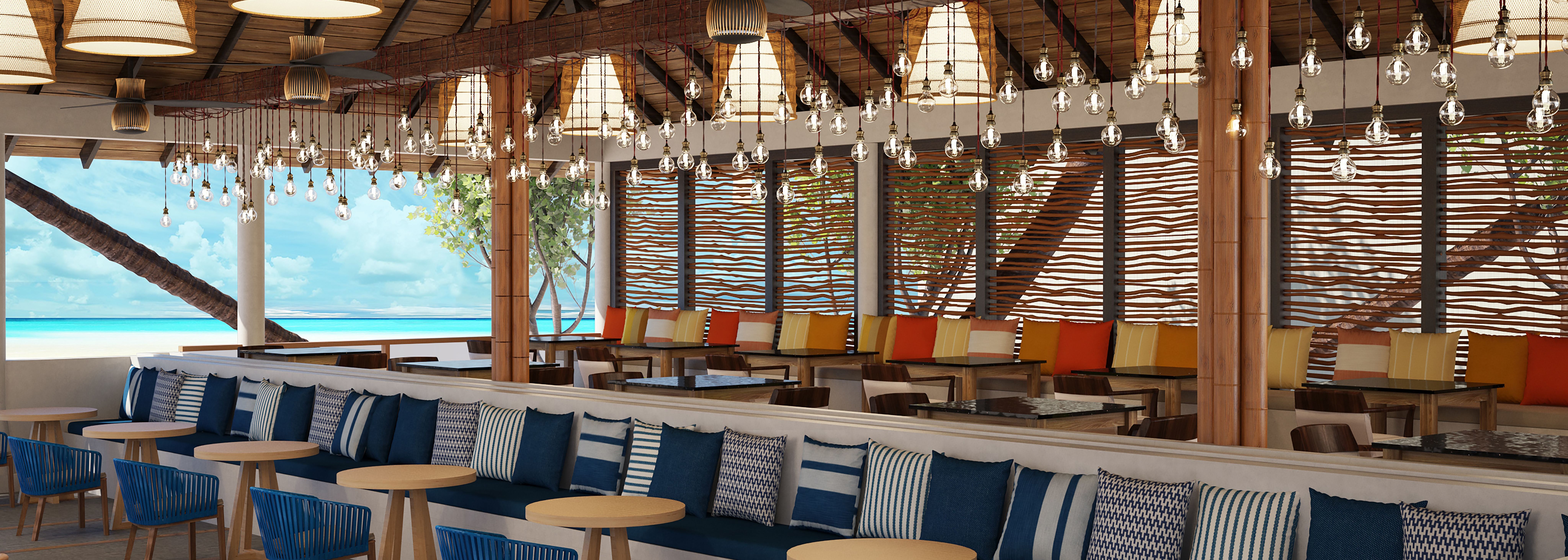 Contemporain et exotique dans sa décoration et dans sa cuisine, ce restaurant offrant une magnifique vue sur le lagon présente des buffets bien garnis. Du petit déjeuner au dîner, des plats savoureux font voyager les papilles aux quatre coins du monde.