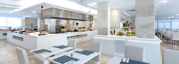 Un buffet copieux attend les convives lors de chaque repas. Varié, il se concentre sur les saveurs ensoleillées de la cuisine méditerranéenne. Ces plats délicieux se dégustent dans une grande salle lumineuse à l'allure contemporaine.
