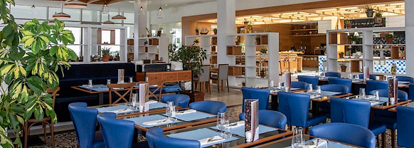 Le restaurant vous invite à partager de savoureux repas aux influences internationales à l'une des élégantes tables de sa terrasse surplombant la mer. Le panorama de rêve offert incite à un dîner romantique, avec le coucher de soleil en arrière-plan.