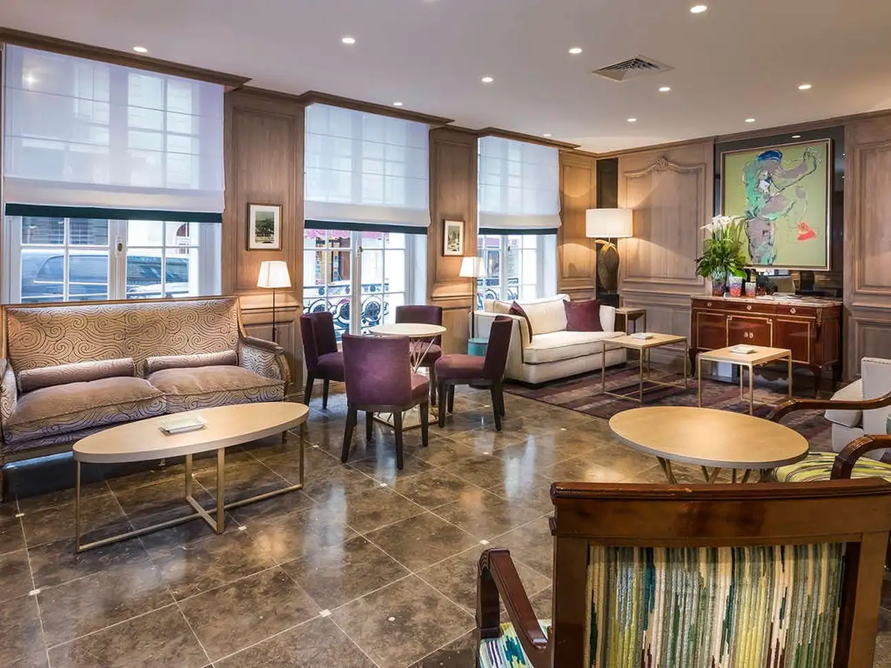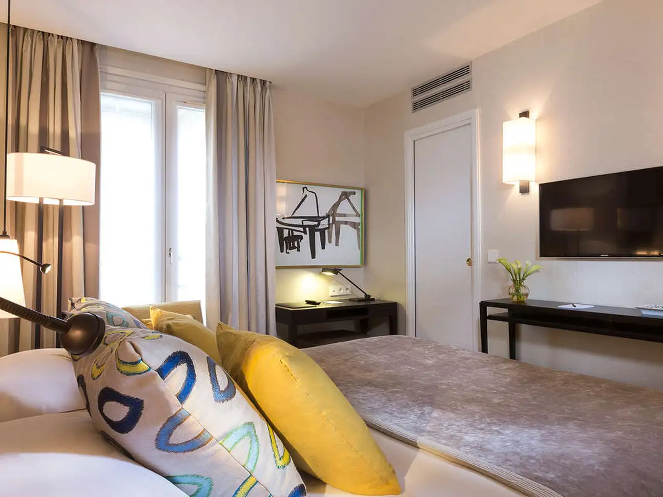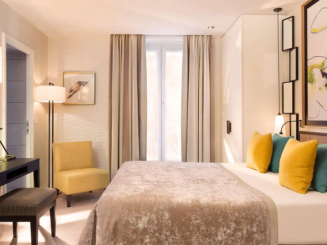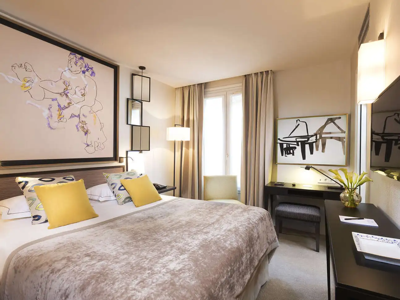 L'atmosphère classique et élégante de nos espaces se voit renforcée par la présence de boiseries chaudes, mobilier contemporain, objets d'époque et fleurs fraîches à chaque étage. Chacune de nos chambres est parfaitement insonorisée, climatisée et pourvue de toutes les facilités modernes dont un écran plat avec 42 chaînes internationales, un mini bar, un coffre-fort, un téléphone et un accès Wifi gratuit. Un iPad est également à votre disposition pour consulter la presse internationale.