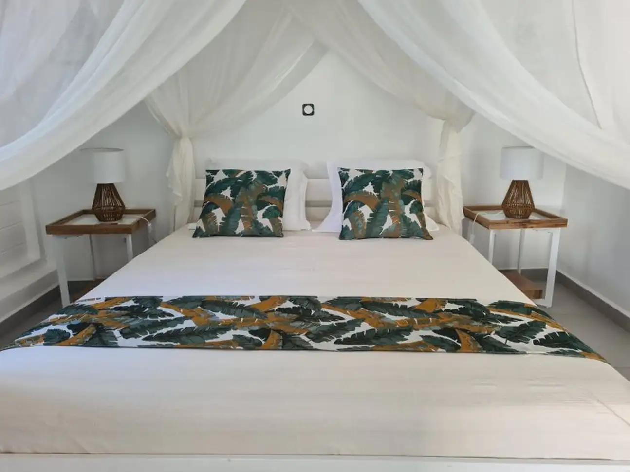 Le duplex côté jardin de 100 m2 pouvant accueillir 8 adultes accompagnés d’un bébé de moins de 24 mois. Il se constitue d’un étage avec 2 suites parentales climatisées avec salle d’eau ; et d’un rez-de-jardin composé de 2 chambres climatisées, 1 salon avec écran présentant les chaînes locales, 1 cuisine sur la terrasse, 1 salle de douche à l’italienne avec WC ainsi qu’une terrasse avec coin salon et repas.