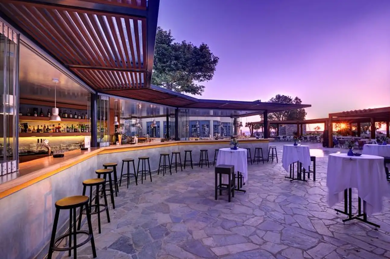 L’établissement propose un éventail très complet d’adresses où se restaurer ou simplement pour prendre un verre. Au restaurant principal Artemis, c’est toute la richesse de la palette des saveurs grecques que l’on retrouve ici, sous forme de buffet. Dans un grand espace aménagé d’une belle véranda offrant un point de vue sur la mer. Le petit-déjeuner est servi sous forme de buffet. A noter pour les végétariens qu’un menu leur est dédié quotidiennement. Pour les inconditionnels de l’hospitalité traditionnelle grecque direction le Kafenion et sa grande terrasse extérieure. Deux restaurants à la carte, le Thalassa vous accueille en bord de mer avec une carte méditerranéenne et le Dyonysos vous fait découvrir les vraies saveurs de la Crète.