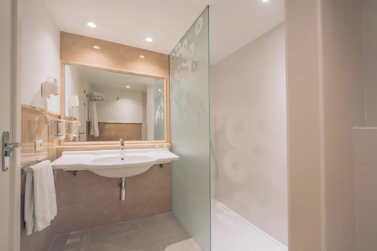 - Chambre vue piscine : environ 25m². Immergez-vous dans l’ambiance qui se dégage de la piscine tout en savourant un rafraîchissement au minibar. Cette chambre avec vue sur la zone de baignade peut accueillir jusqu’à 3 personnes.