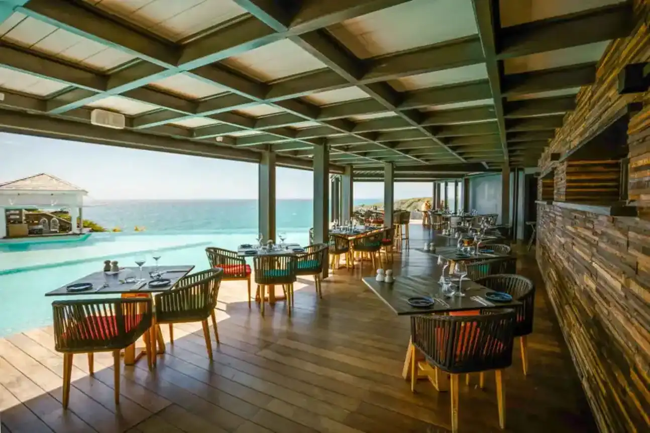 Au Bar de la Mer, c’est option snacking et cocktails tropicaux avec vue panoramique sur les îles.