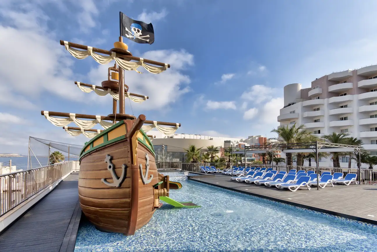 L'hôtel dispose d'une petite plage de sable, de deux piscines extérieures communicantes et d'une piscine pour enfants.