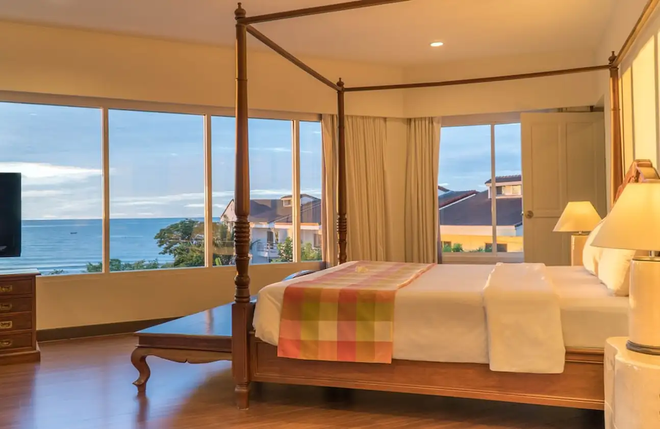 L’hôtel est implanté au bord d’une plage paisible, à Cha Am, une station balnéaire davantage connue et fréquentée par les Thaïlandais que par les touristes étrangers. Sa plage est bondée le week-end (immersion totale garantie au milieu des habitants de Bangkok), plus calme en semaine.