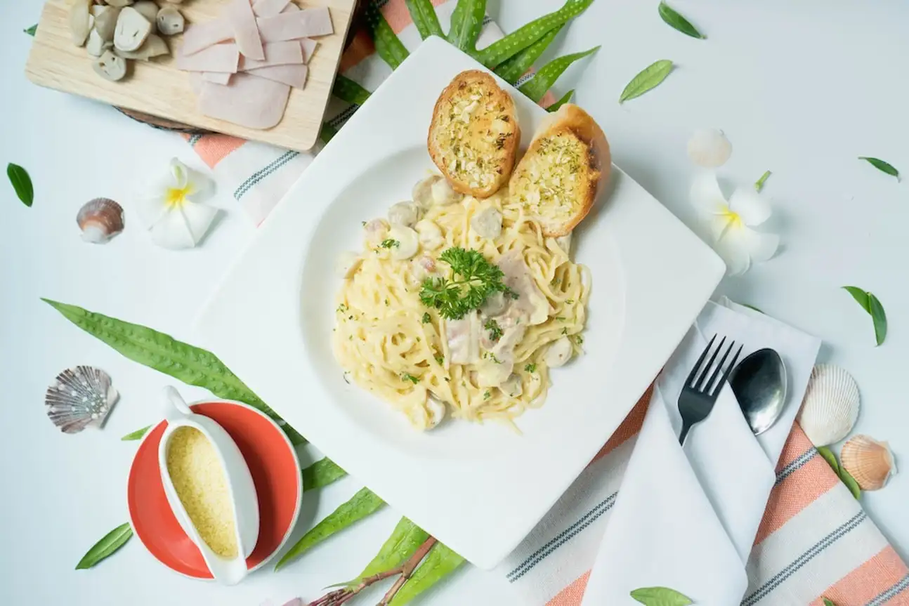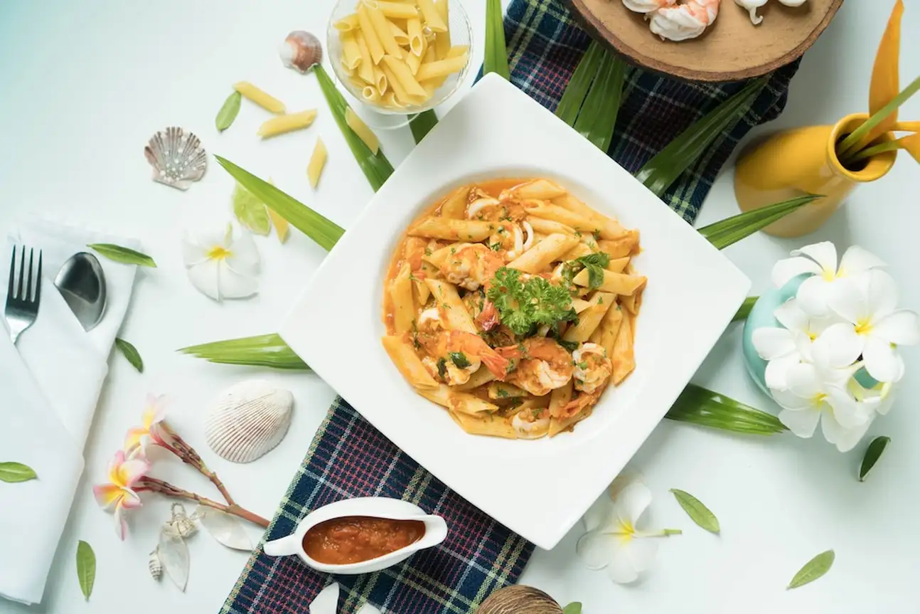 Plats traditionnels et européens, menus adaptés si besoin. Petits-déjeuners copieux. Bon point : l’hôtel dispose de sa propre boulangerie-pâtisserie, que les clients peuvent d’ailleurs visiter. Beach bar avec cocktails dont le signature Cerabrity, un punch à l’ananas.