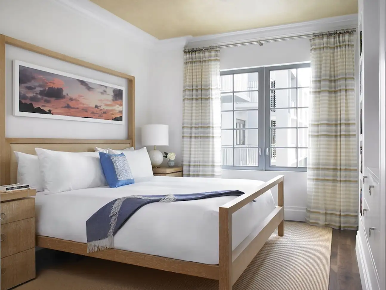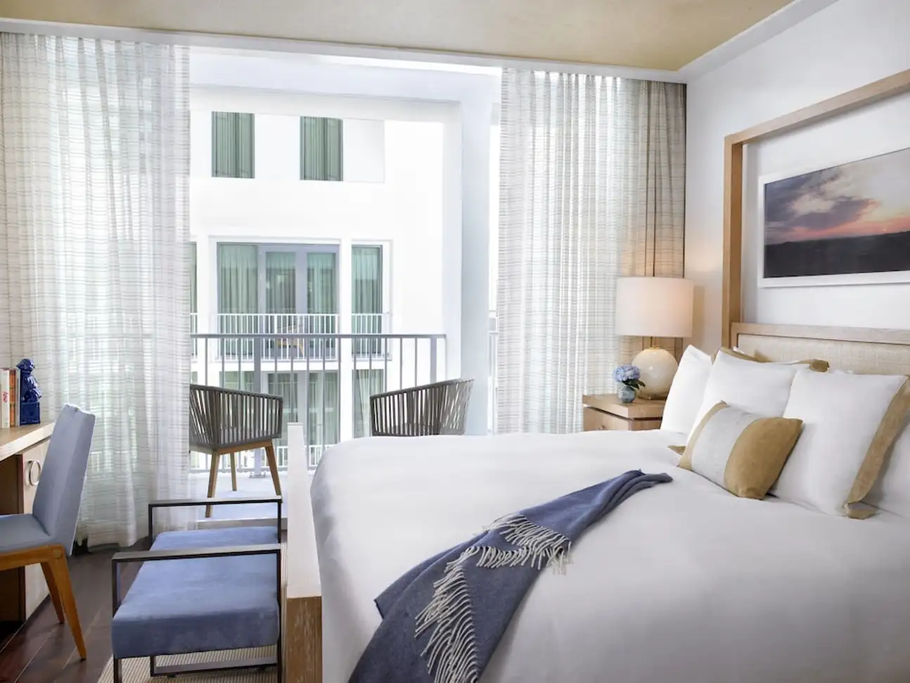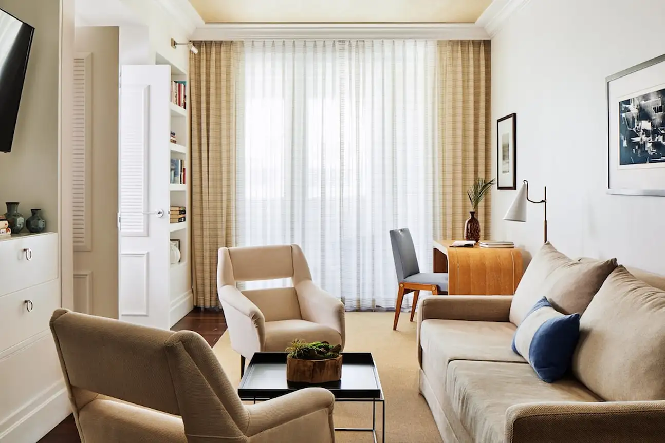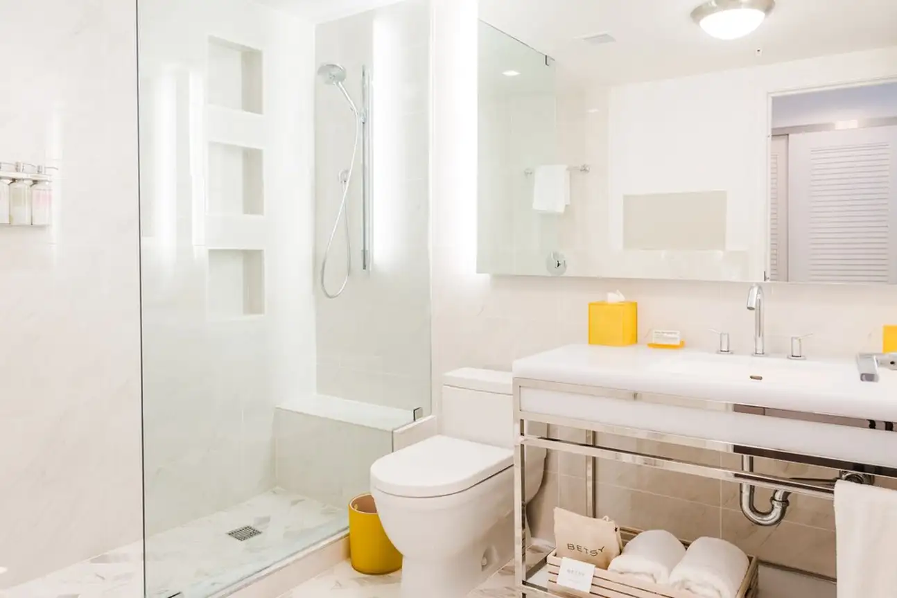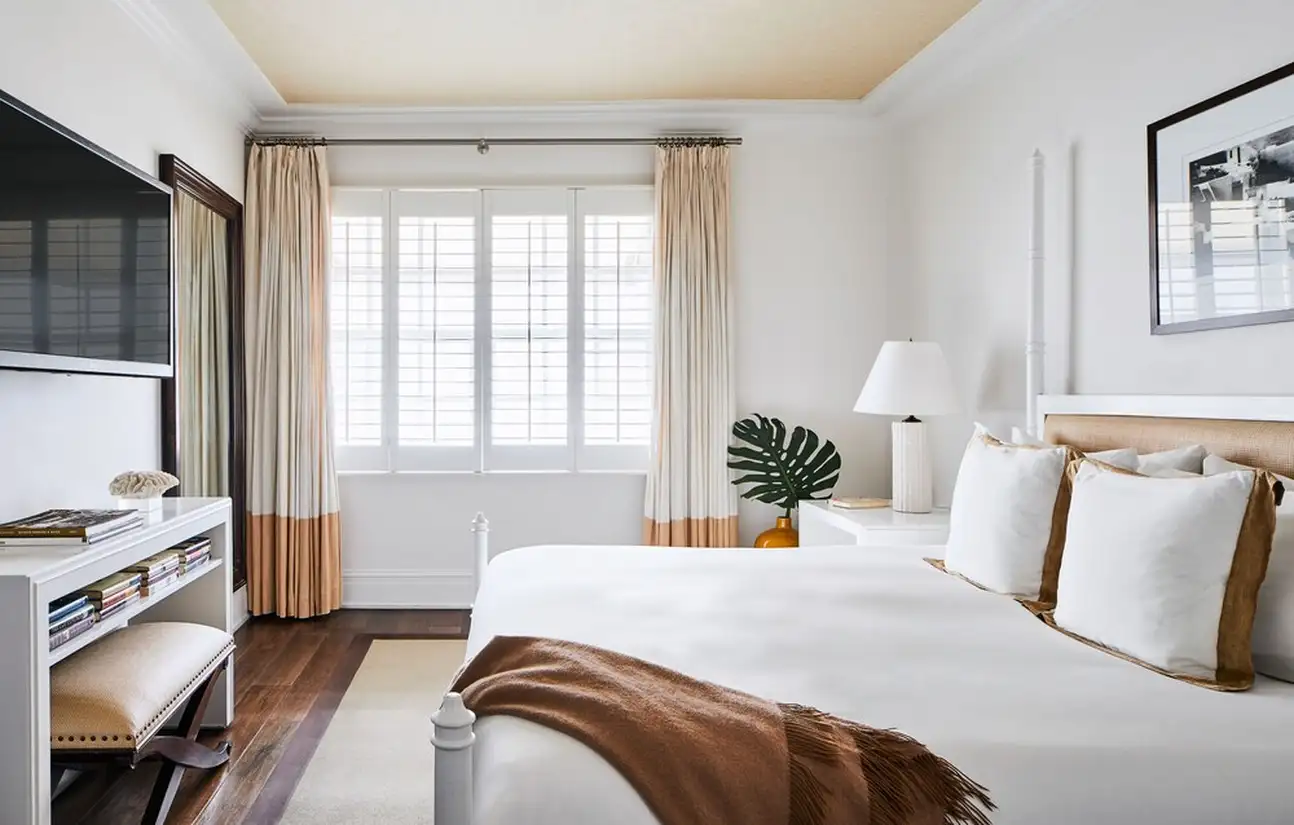 La culture est essentielle, qu’on le veuille ou non. A The Betsy South Beach, il n’y a pas de débat là-dessus et l’hôtel place vraiment les arts au centre. Au fil de vos journées, vous apprécierez donc des portraits en noir et blanc dans les couloirs, des tableaux dans les chambres et surtout deux pièces d’art contemporain grandiloquentes à l’extérieur. La première est la Betsy Orb, sorte de boule blanche géante coincée entre deux bâtiments, la deuxième est le Poetry Rail, barrière en métal avec des bouts de poésie de grands auteurs. L’établissement accueille justement des écrivains en résidence, avec qui vous pourrez discuter lors des talks organisés avec eux. Sans oublier des concerts chaque soir dans le lobby ! Mais tout ça n’empêche pas à l’hôtel d’être super bien décoré. Avec ses volets et sa terrasse sur le trottoir, le bâtiment blanc a des airs de maison sur la plage. Et attention, il cache une piscine et un spa sur le rooftop, une autre piscine dans la cour. Point final : impossible d’être mieux placé, vous êtes tout en haut d’Ocean Drive et la plage est juste en face ! Avec transats et parasols rien que pour vous.