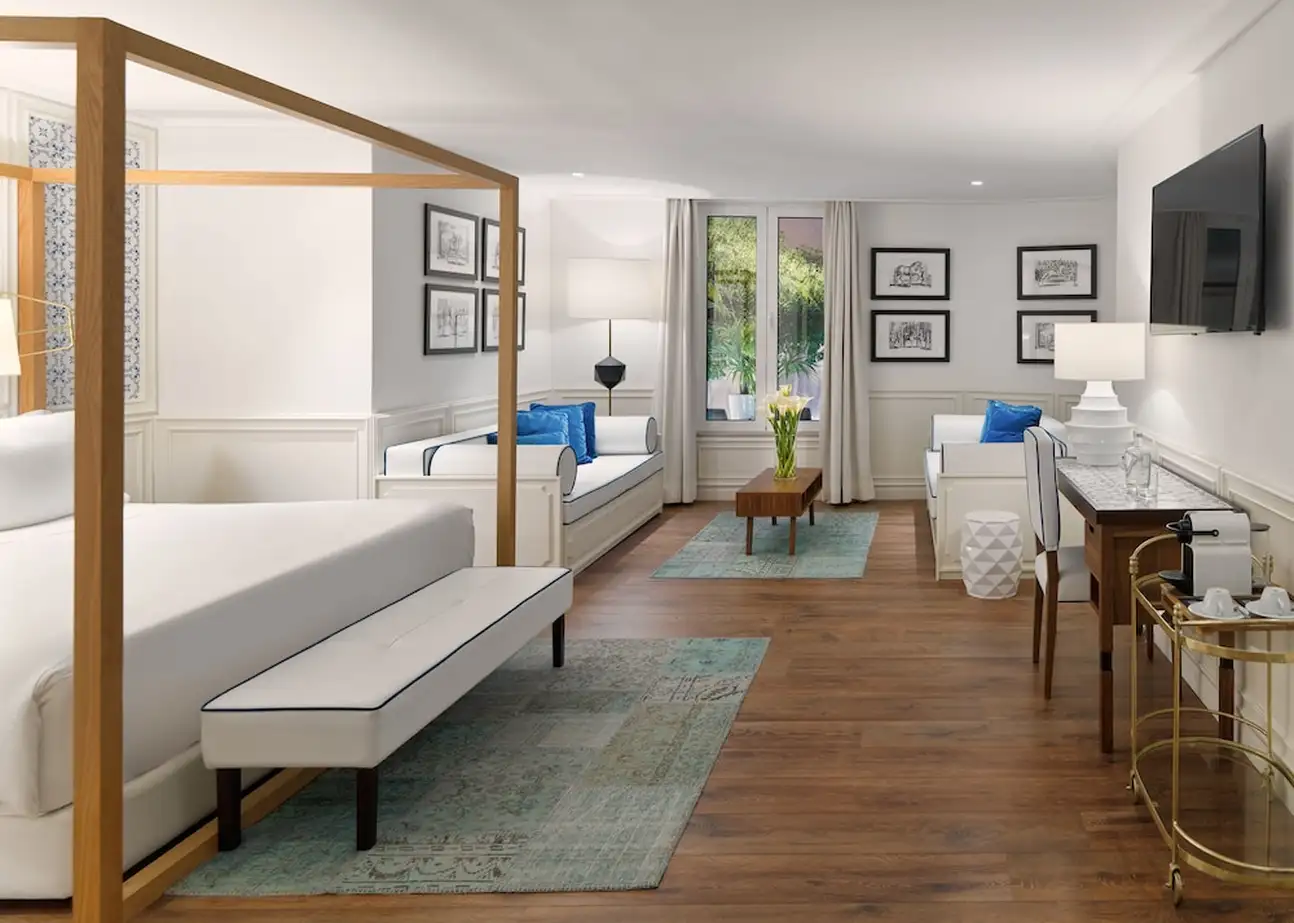De l'espace et de la lumière ! Surtout que certaines chambres ont un balcon. Et puis le blanc domine, avec des azulejos colorés pour réveiller le "tout épuré". A cela s'ajoute des salles de bains XXL, parées de marbre et carreaux de ciments noir et blanc au sol. Une déco raffinée, digne de celle d'un appartement ultra cosy, avec tables basses, consoles, fauteuils, gravures anciennes sur les murs.