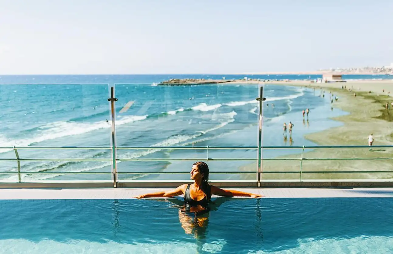 L’hôtel dispose d’une grande piscine centrale et d’une petite piscine à débordement, les deux chauffées en hiver, d’un solarium équipé de chaises longues, de matelas et parasols. Pour varier les plaisirs, vous pourrez vous détendre sur la plage de Las Burras, au pied de l’hôtel.