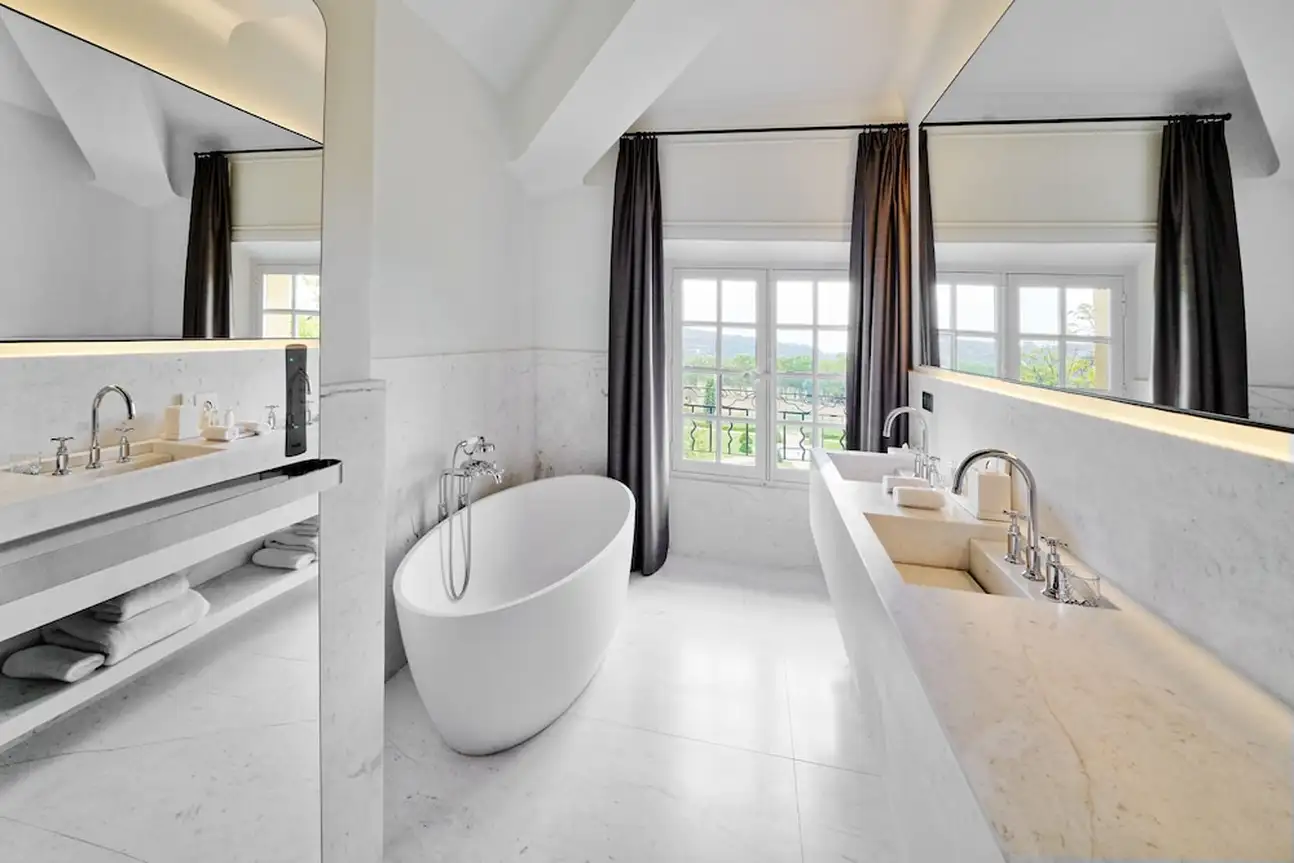 Vous aimez le mobilier contemporain, une certaine sobriété dans la déco, l’art ? Alors vous aimerez vous endormir dans l’une des 7 chambres de la bastide ! Pour une déco plus chaleureuse mais toujours aussi chic, optez pour les chambres installées dans les dépendances. Mention spéciale pour les produits Guerlain dans les jolies salles de bain en marbre dépoli.