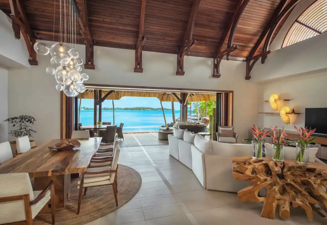 - Suite signature Frangipane vue mer : Si vous cherchez des prestations d’excellence, une quiétude et une intimité absolues et jouir de terrasses avec vue panoramique en première ligne sur l’océan Indien, cette suite signature Frangipane vous comblera. Perchée sur un îlot isolé, cette spacieuse suite peut accommoder jusqu'à 2 adultes et 2 enfants (de moins de 12 ans) avec un lit additionnel (sur demande).